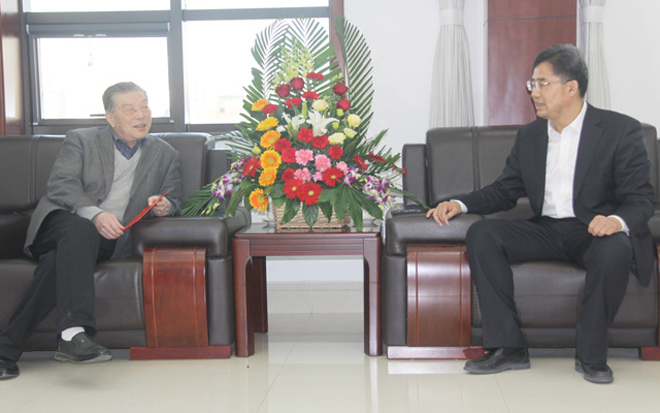 1月29日,沂源縣縣委書記王義樸(右前二)一行十余人來我公司看望省級勞動模范、董事長柴文...